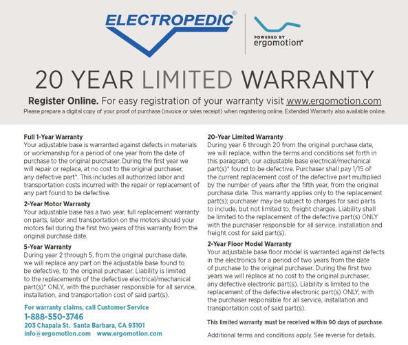 ![]() ELECTROPEDIC WH2 20-YEAR LIMITED WARRANTY |